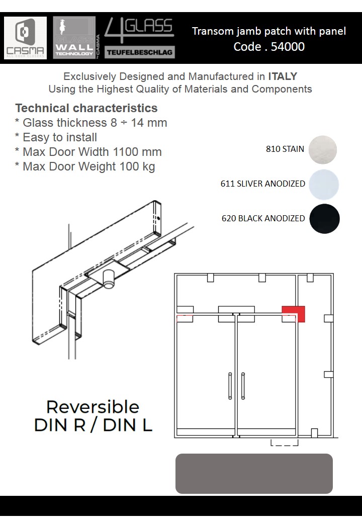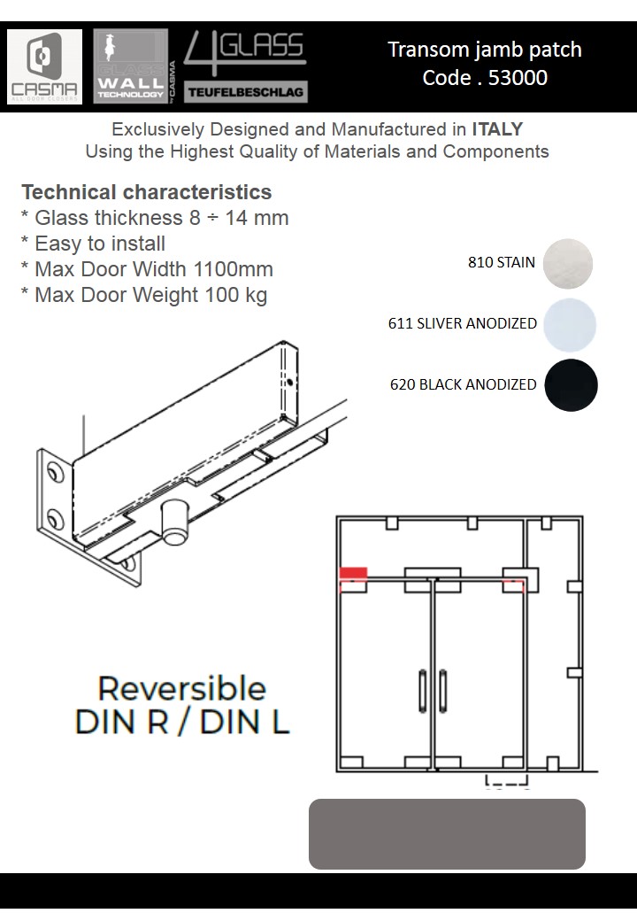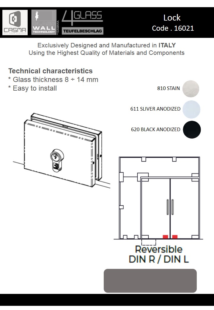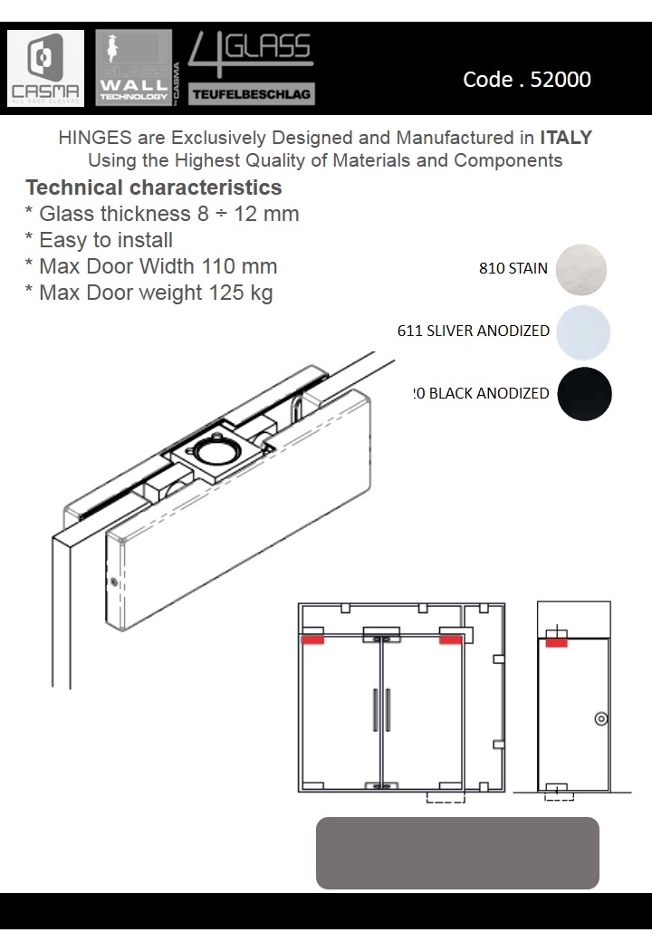 From 1942 Casma guarantees quality, originality and innovation in door closers and glass fittings design and production.