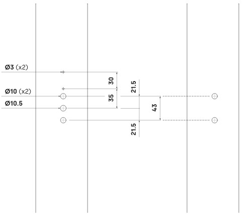 • Front fixing without the need to perform prior machining on the profile.