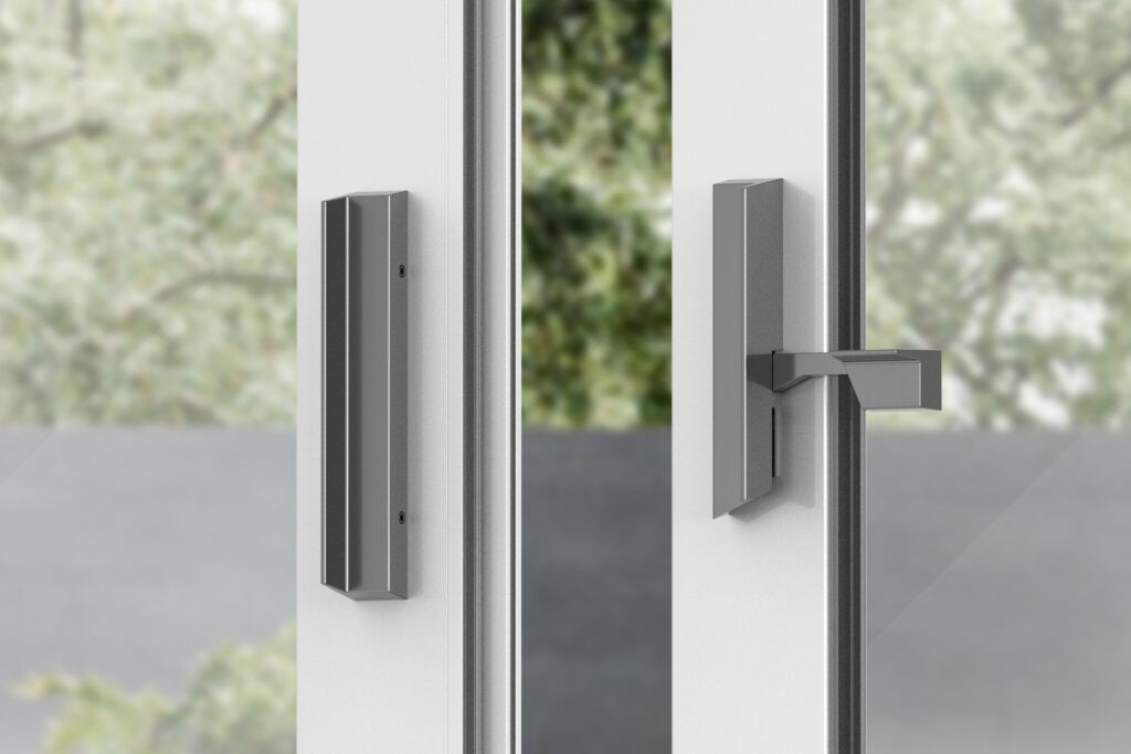 Exterior pull handles that allow the opening of sliding windows.