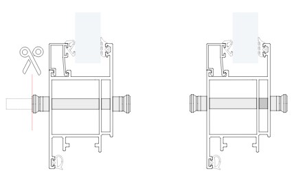 • Installation of double handles using a diabolo on each side of the profile.