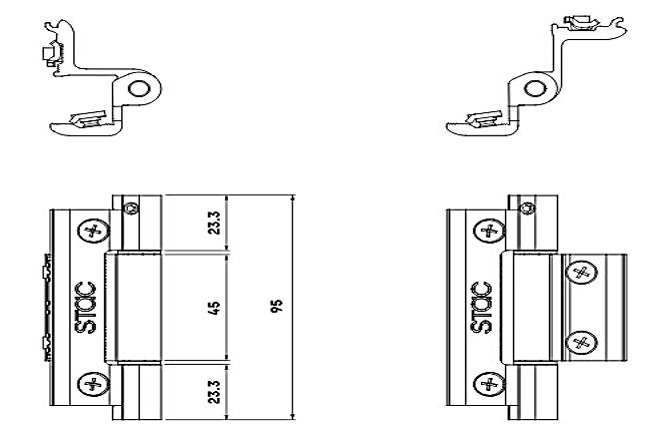 • Self-assembly hinge: the geometry of the plates and backplates allows direct mounting without grooves.