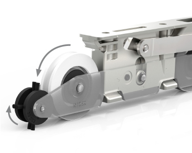 • The design guarantees an equal sash weight distribution over each wheel during all of the lifting kinematics and by design, each wheel supports exactly the same load value as its pair in a balanced way. This is fundamental in order to guarantee against wear during the life of the hardware, the correct working of the bearings without seizing, breakages, appearance of noise etc. Also it enables a correct dimensioning of the bearing features exactly.