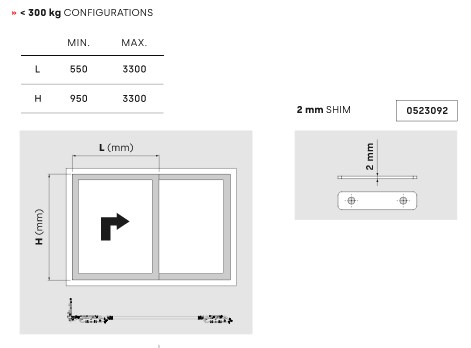 • Bogies support sash configurations up to 300 kg.