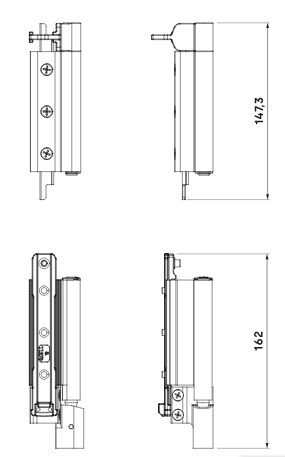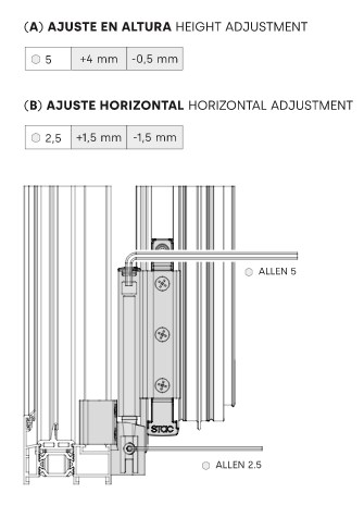 • Lower hinge adjustments: -0.5, 4 millimetres in height and ± 1.5 millimetres horizontally.