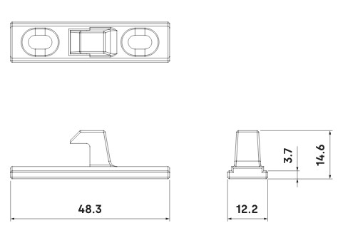 • Overall dimensions: 48.3 x 12.2 mm (height x width).