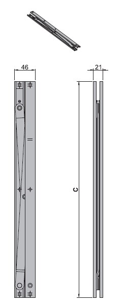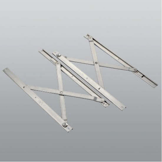 1330PS/18 Couple of parallel opening arms, length of 18” (475 mm), in austenitic (not magnetic) AISI 304 stainless steel, adjustment frictioning grub screw, opening of 200 mm. Weight capacity 50 Kg. Suitable to profiles with clearance >= 21 mm.