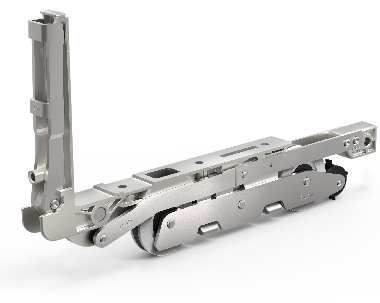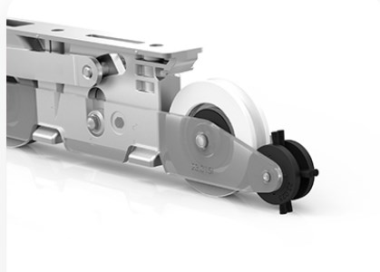 • The design guarantees an equal sash weight distribution over each wheel during all of the lifting kinematics and by design, each wheel supports exactly the same load value as its pair in a balanced way. This is fundamental in order to guarantee against wear during the life of the hardware, the correct working of the bearings without seizing, breakages, appearance of noise etc. Also it enables a correct dimensioning of the bearing features exactly.
